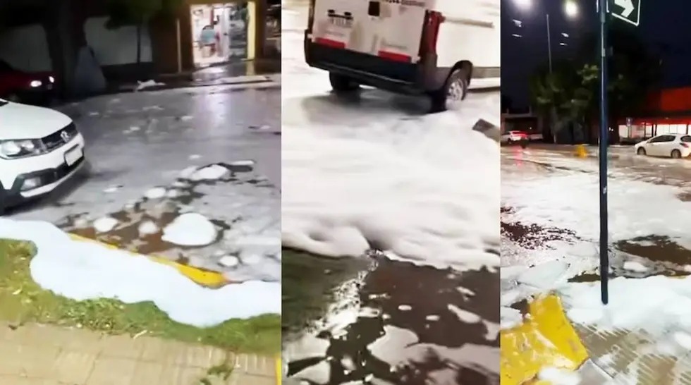 INFORMACIÓN GENERAL Misteriosa espuma cubrió calles de Villa Dolores tras la tormenta 16 de abril de 2026