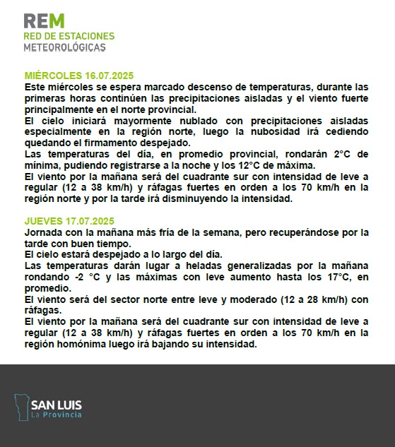 El viento fuerte, las lluvias y el frío volvieron a ser protagonistas del clima en la provincia. No llegaron por sorpresa: un informe especial de la Red de Estaciones Meteorológicas (REM) había anunciado los cambios.