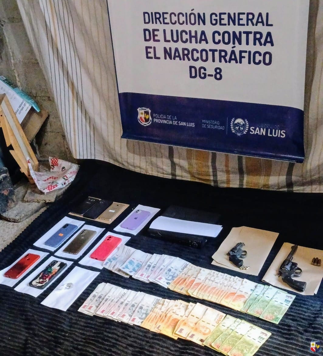 Mientras que en una vivienda de la manzana 66 del barrio Eva Perón fueron secuestrados: un envoltorio de nylon con marihuana, un DVR, siete teléfonos, un revólver calibre 38 largo, tres proyectiles (dos calibre 38 largo y el restante, calibre 44), un revólver calibre 22 corto con cuatro proyectiles y $1.302.500 en efectivo.