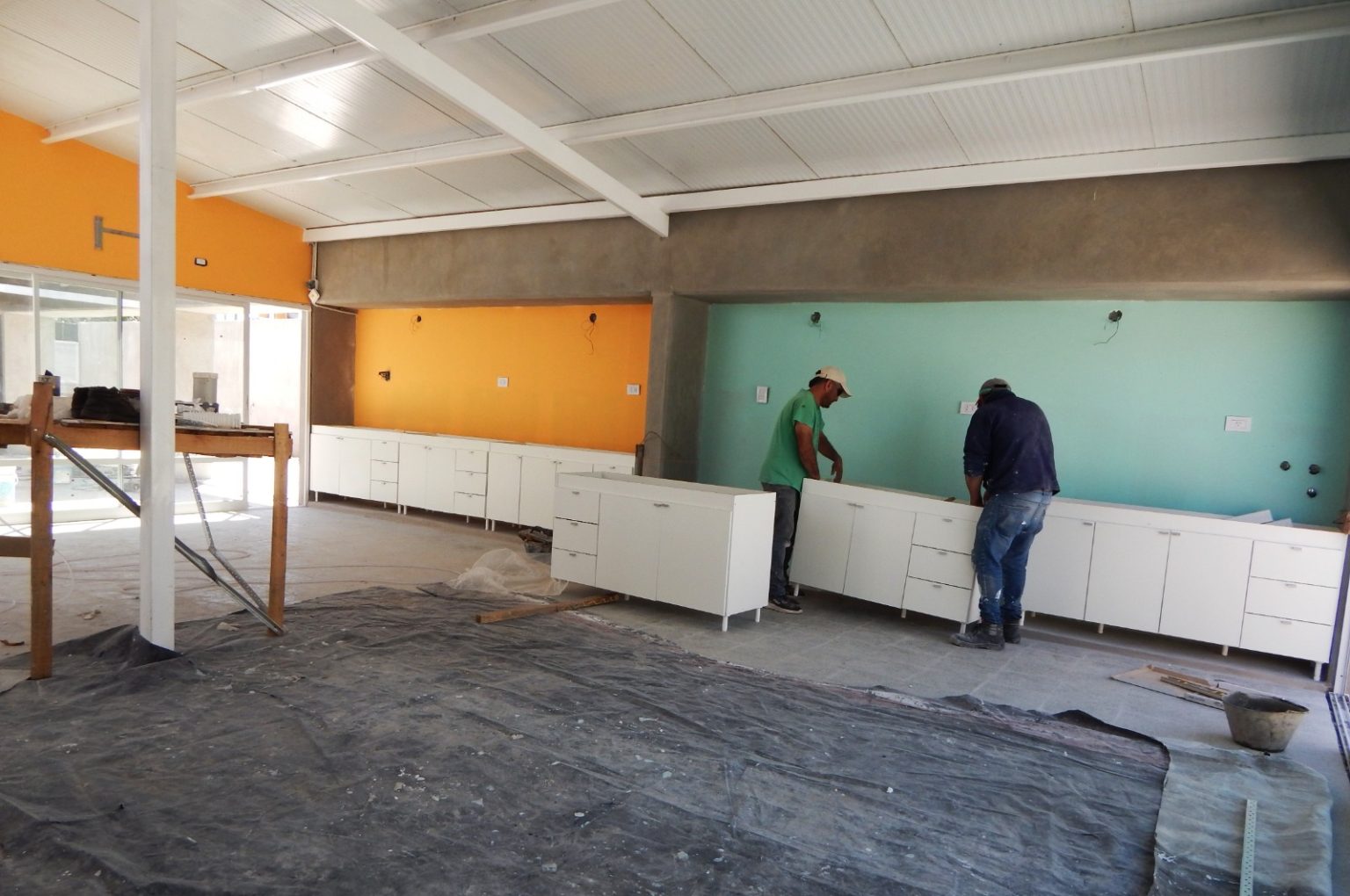 La Dirección de Obras de Arquitectura y Viviendas informó que actualmente se realizan tareas de colocación de carpinterías, instalación de equipamiento en el área de cocina y ajustes en los sistemas eléctricos y de iluminación. Además, ya se completaron los revoques, la pintura interior y los cerramientos vidriados, lo que permite apreciar la forma definitiva del edificio.