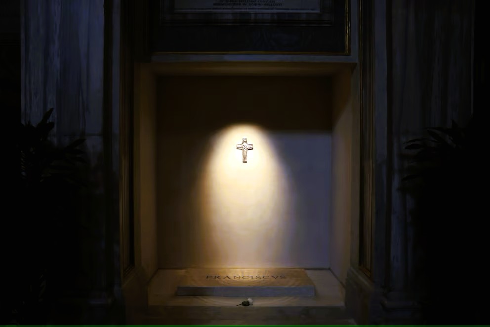 Tras la ceremonia privada del sábado, posterior a su multitudinario funeral, los restos de Jorge Bergoglio descansan en una sepultura de piedra, iluminada tenuemente. Fiel a su estilo de sencillez, la lápida lleva una única inscripción en latín: «Franciscus».