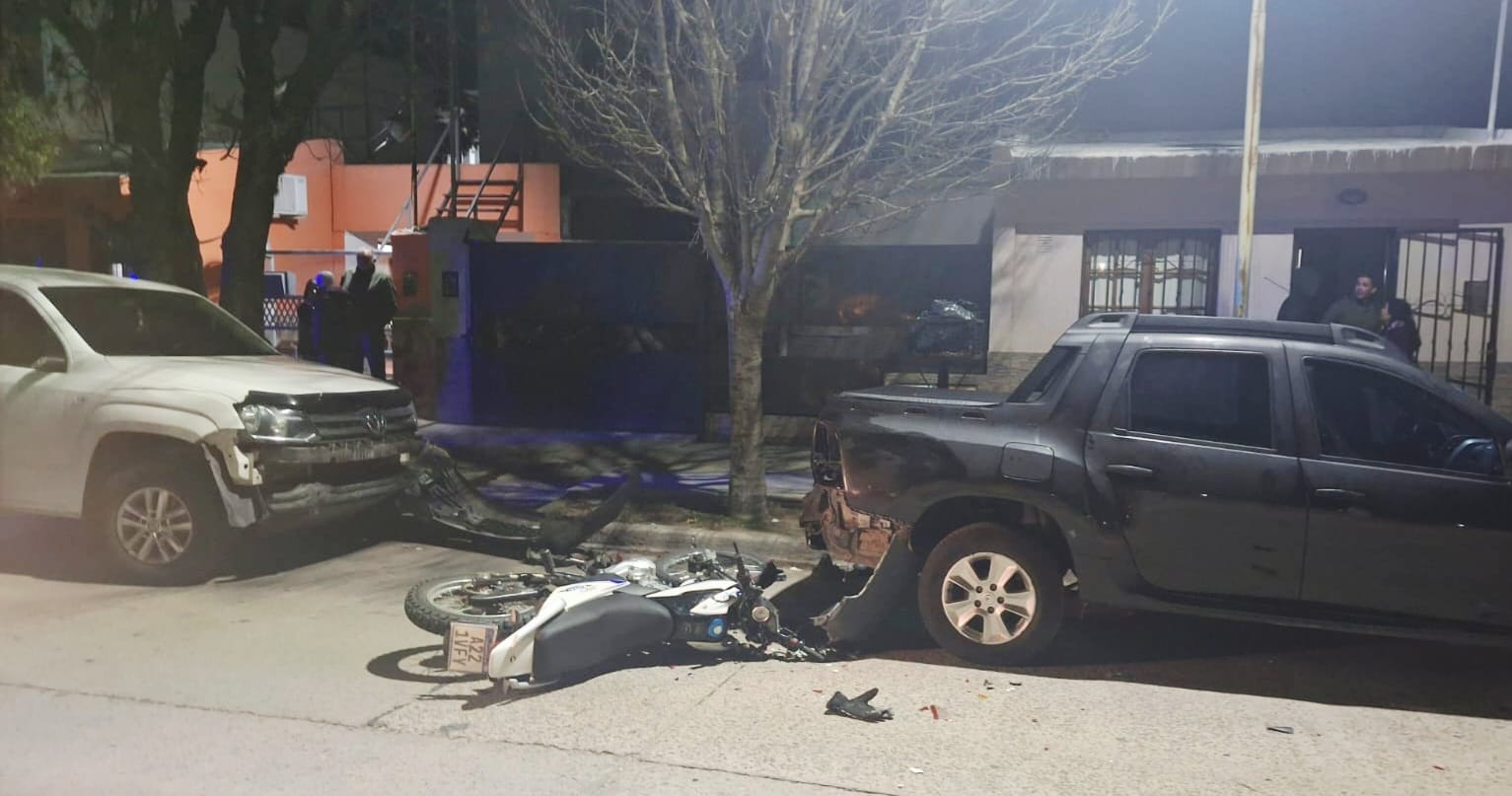 Cuando los efectivos llegaron a la dirección referida del barrio Colón constataron que un joven en una moto había colisionado contra dos camionetas, perfectamente, estacionadas en la calle: una Volkswagen Amarok y una Renault Duster Oroch.