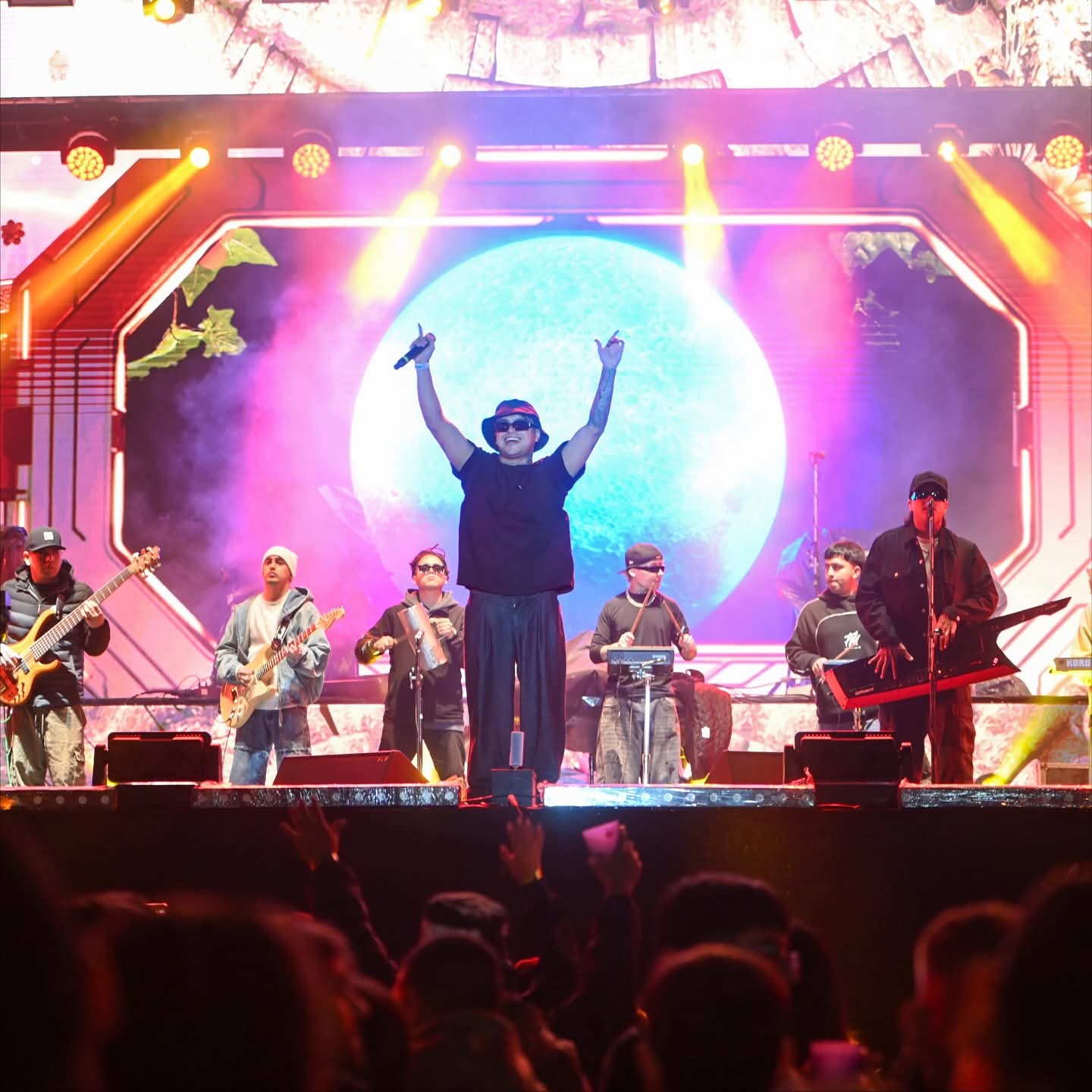 Antes del espectáculo central, “La T y la M” subieron al escenario. El grupo que saltó a la fama con los jugadores de “la Scaloneta” durante el Mundial de Qatar obtenido por la Argentina, cantó “Pa la Selección”. Además de su hit, hicieron sonar otros covers.