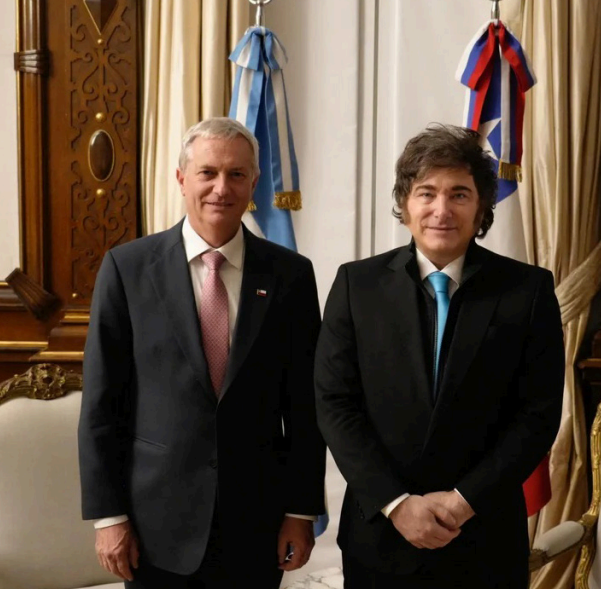 El presidente Javier Milei recibió ayer al electo mandatario de Chile José Antonio Kast en Casa Rosada, al cumplir su promesa de campaña de aceitar el vínculo entre ambas naciones. Al término, se acercó a la reja que separa el Palacio de Gobierno y la Plaza de Mayo y manifestó: “Todo va a estar bien. Vamos a tener una muy buena relación”.