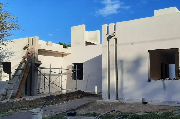 En Naschel hay en marcha cuatro casas, dos de ellas en etapa de llenado de losa y ejecución de revoques, mientras que las dos restantes cuentan con mampostería completa y se las prepara para recibir la losa.