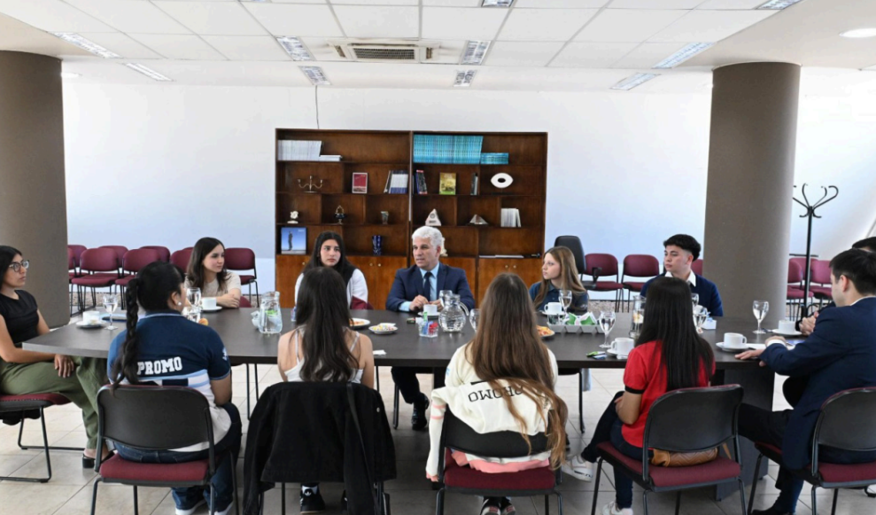 Los chicos, que durante el ciclo lectivo 2025 se esmeraron por tener el mejor rendimiento escolar de la provincia, pudieron dialogar sobre sus puntos de vista y anhelos en el ámbito educativo con el Jefe de Estado quien estuvo acompañado por el ministro de Educación, Guillermo Araujo, y la directora de Becas y Beneficios Estudiantiles, Candela Escudero