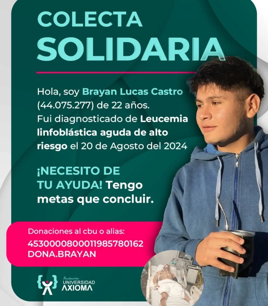En las últimas horas circuló un flyer invitando a participar de una colecta para ayudar al joven de 22 años con la consigna «Necesito de tu ayuda, tengo metas que concluir».