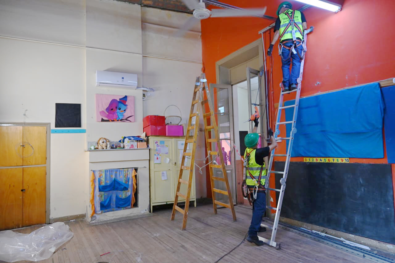Las acciones también contemplaron la recarga de 500 matafuegos, el reemplazo de 34 equipos y la colocación de más de 360 ventiladores de pared. A esto se sumaron tareas en sistemas cloacales, instalaciones eléctricas y trabajos en techos de chapa y membrana.