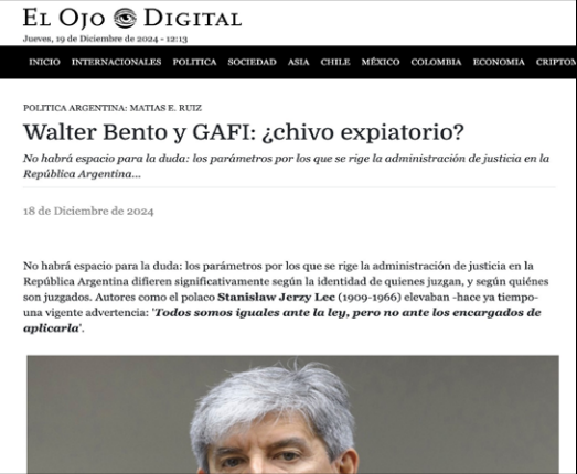 “La relación familiar entre la jueza y un alto funcionario del GAFI, sumada a la negativa de admitir el informe de GAFILAT como prueba, plantea dudas sobre la imparcialidad del tribunal y la transparencia del proceso judicial”, se puede leer en el articulo.
