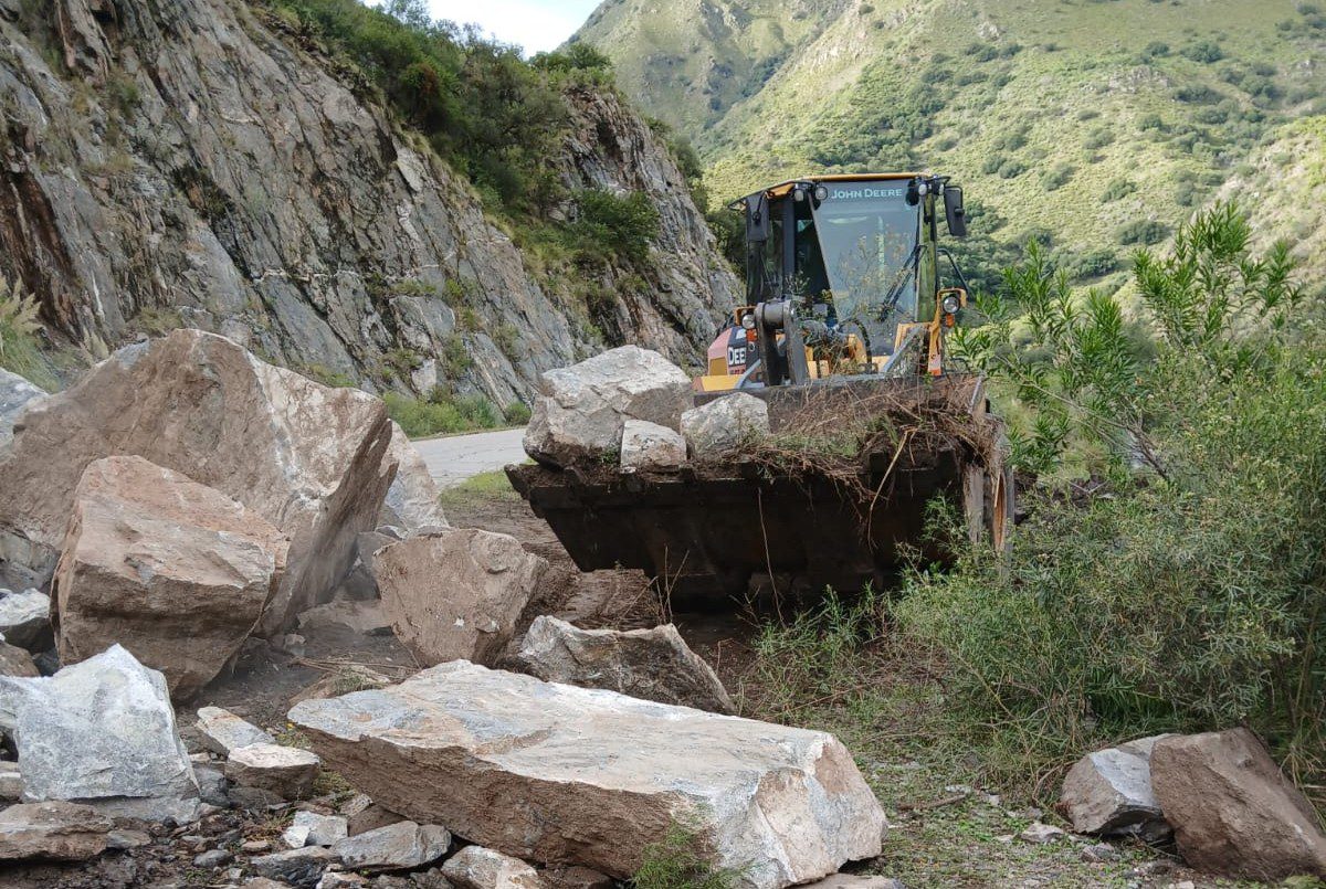 Ante esta situación, la dirección de Vialidad Provincial desplegó este jueves por la tarde maquinaria pesada para retirar los bloques de gran tamaño. Con cargadoras frontales realizan maniobras de remoción y traslado de los peñascos que quedaron sobre la calzada, producto del derrumbe registrado en la ladera.