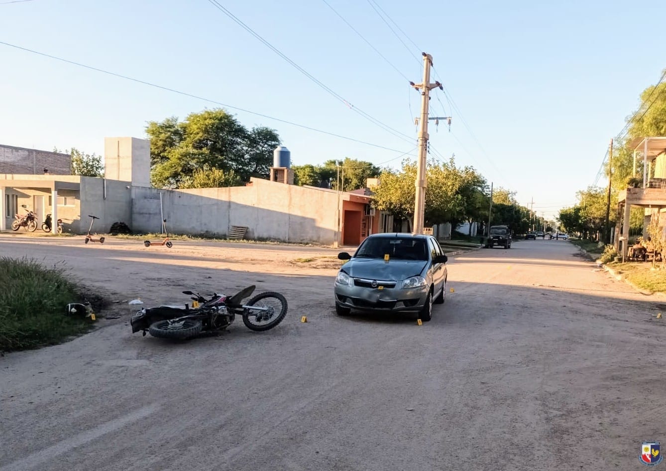 El accidente ocurrió a las seis y cuarto de la tarde en la esquina de calles San Luis y San Martín. La moto Motomel Skua 150 circulaba por San Luis, de este a oeste, conducida por una joven de 19 años, que llevaba a dos sobrinas de 6 y 11 años. El automóvil Fiat Siena transitaba por San Martín, de norte a sur, conducido por un joven de 25 años. Las tres ocupantes de la moto cayeron del rodado y resultaron lesionadas.
