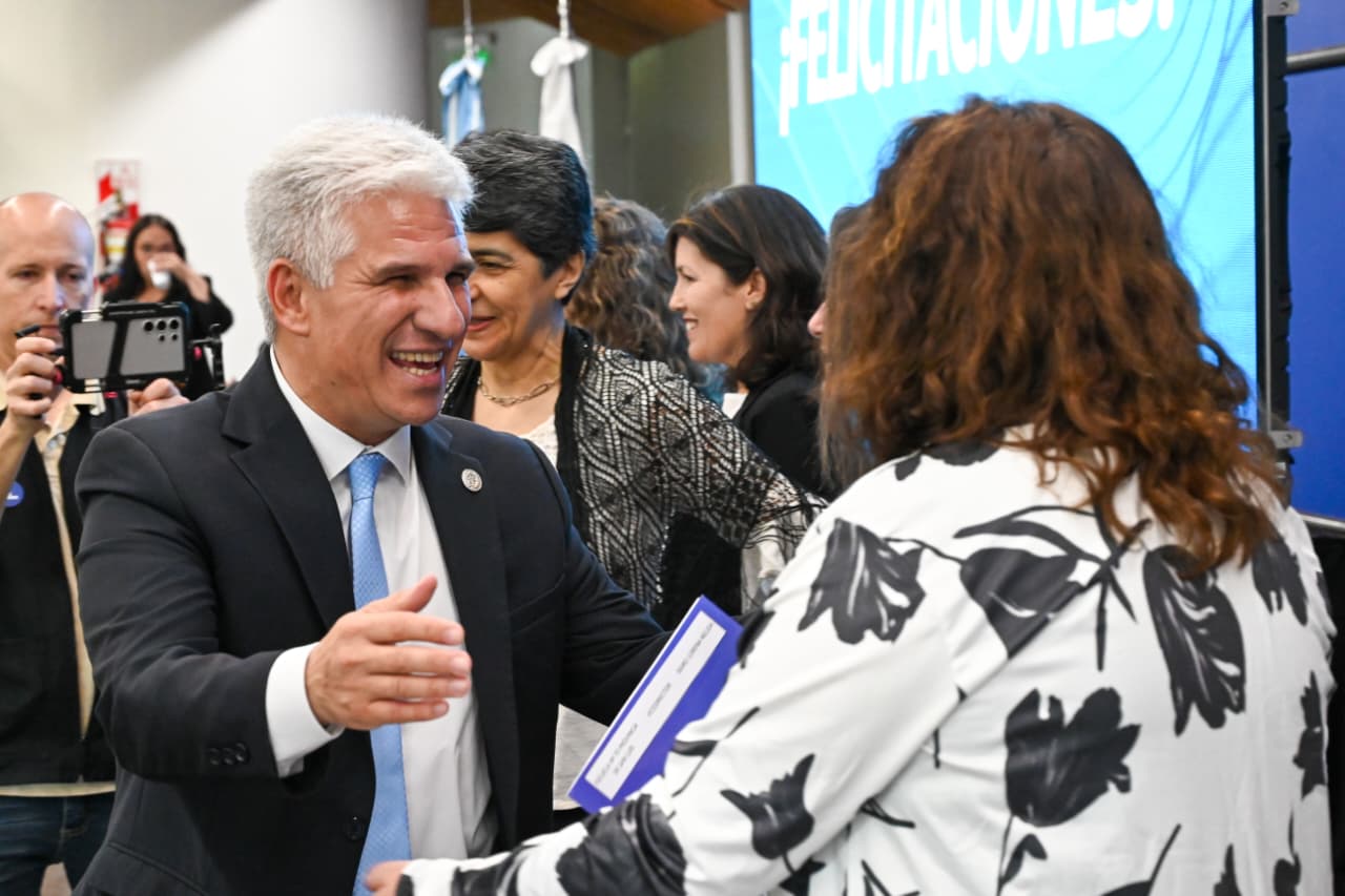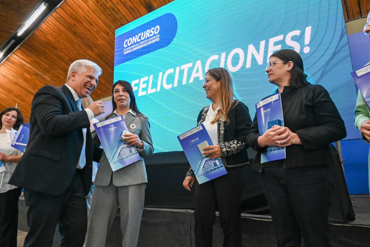 El gobernador Claudio Poggi encabezó la entrega de los decretos de designación de cargos directivos cubiertos en el Concurso de Antecedentes, Méritos y Oposición. Los reconocidos cumplieron con la instancia de capacitación, diseñada especialmente para acompañar y enriquecer el trayecto formativo de los aspirantes. Aprobaron la evaluación y defensa de los proyectos, además de obtener los mejores puntajes para acceder a la dirección.