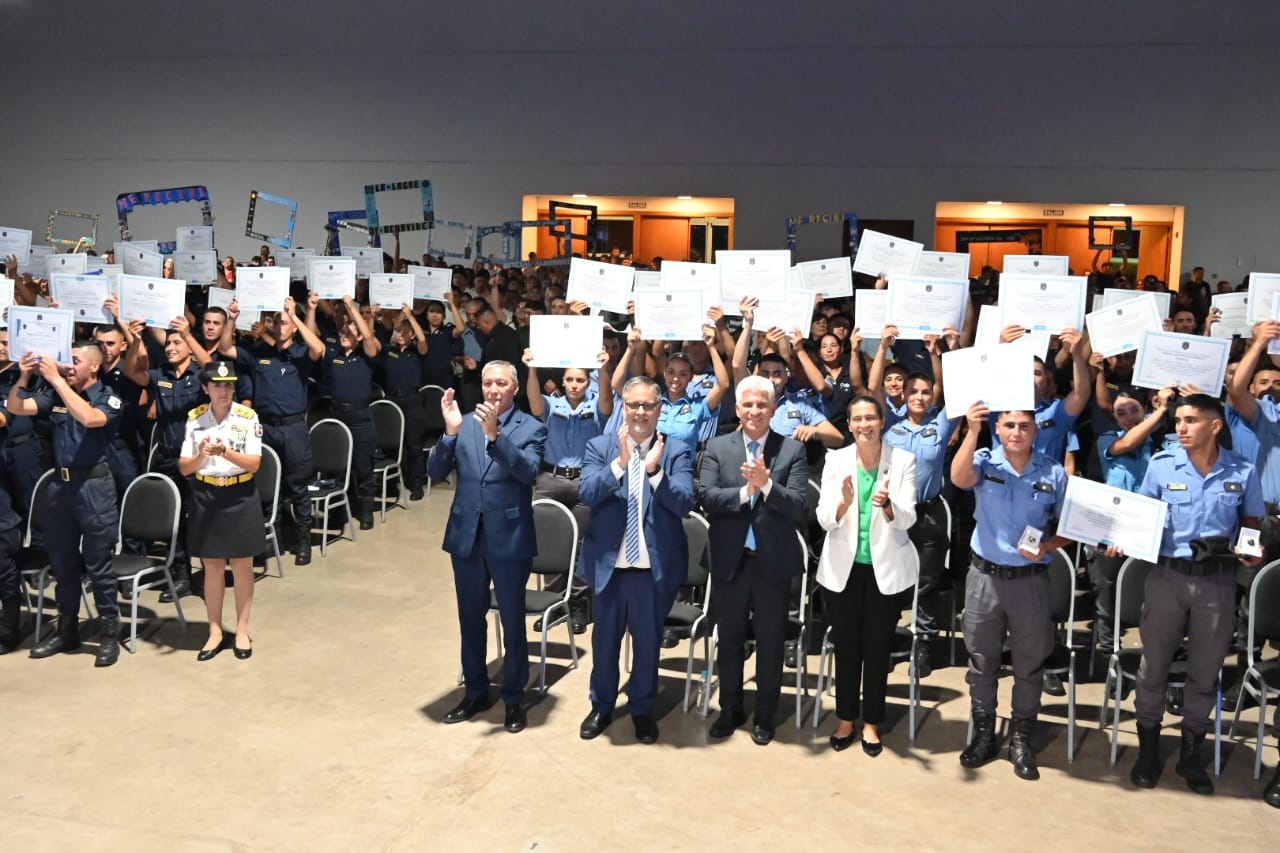 Durante la entrega de diplomas la ministro de Seguridad Nancy Sosa les anunció que recibirán una beca “para acompañar el proceso” y un bono especial, el decreto ya fue firmado por Claudio Poggi.