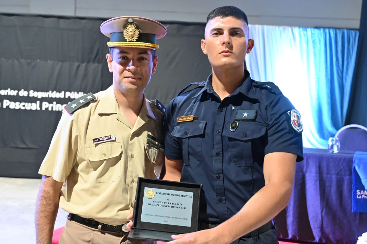 Al culminar la entrega de certificados, llegó el momento de reconocer a quienes tuvieron un desempeño excepcional durante su formación académica. Por ello, Gendarmería Nacional entregó un presente a Alexis Daniel Tecio, quien obtuvo un promedio de 9.05, el mejor del Instituto.