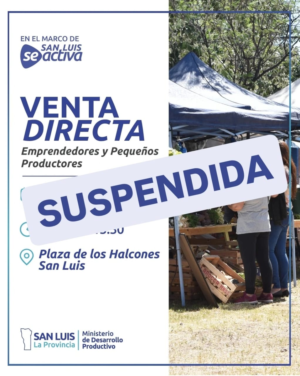 Por una parte, los organizadores decidieron suspender la Venta Directa que iban a realizar este miércoles 26 de marzo, en la plazoleta Halcones del Cielo. El evento fue reprogramado para el próximo miércoles, 2 de abril, en el mismo horario.