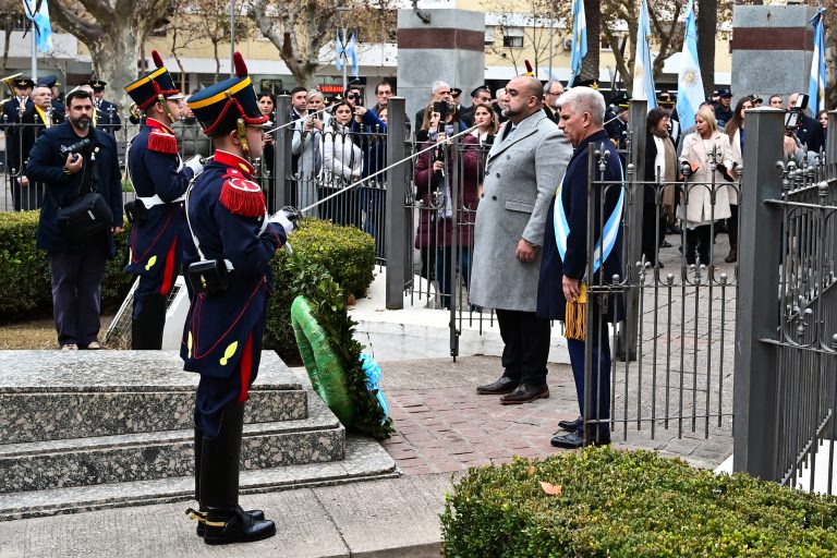 Cuando finalizó el Tedeum, las autoridades, fuerzas vivas y delegaciones salieron de la parroquia y cruzaron hasta la histórica plaza Juan Esteban Pedernera, ubicada al frente, donde está el monumento que tiene el sepulcro del prócer sanluiseño.