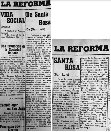 Distintas asociaciones de la ciudad capital se sumaron con colaboración de dinero, la Sociedad Italiana, la Sociedad Israelí y la Sociedad Sirio-libanesa. La empresa de electricidad de Los Antes, donó $50.000, el centro de empleados de comercio en la ciudad de San Luis, organizó un baile para recaudar dinero. El diario La Reforma organizó una colecta y lo mismo realizó el obispado de San Luis.