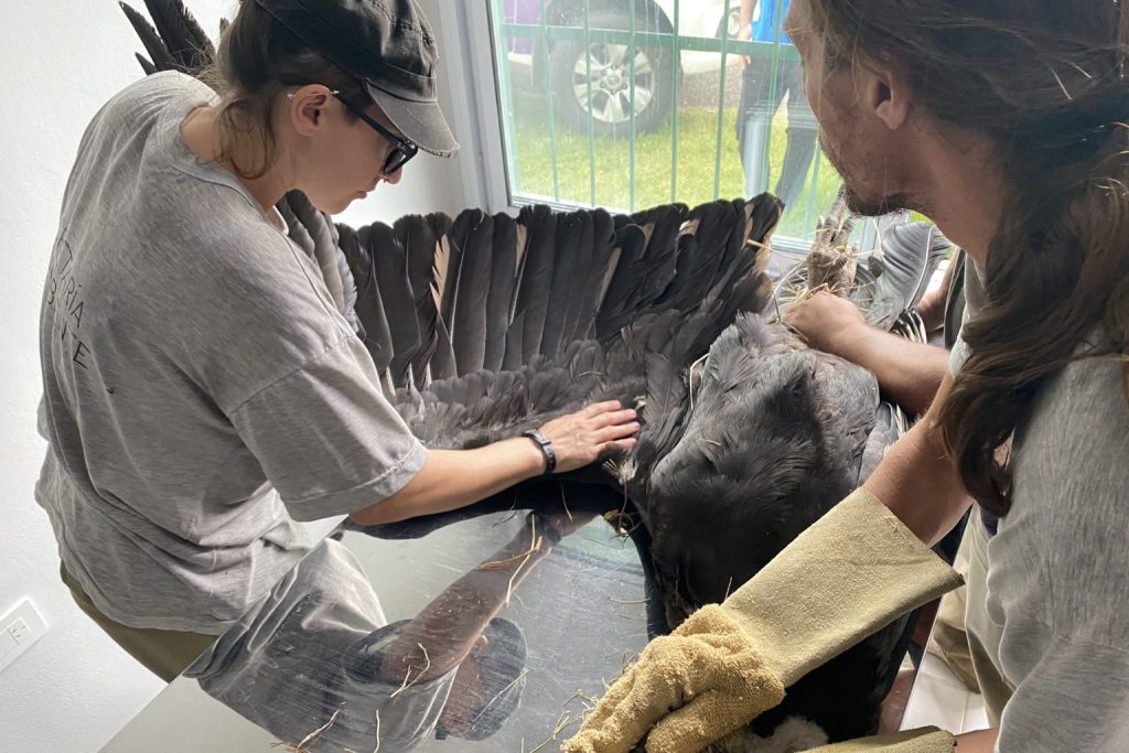 Un equipo del Centro de Conservación de Vida Silvestre (CCVS), conformado por veterinarios y cuidadores, arribó a la localidad serrana para trasladar al animal. Posteriormente, los especialistas llevaron adelante una revisión general, en la cual constataron que su plumaje y condición corporal eran buenos, sin signos de desnutrición.