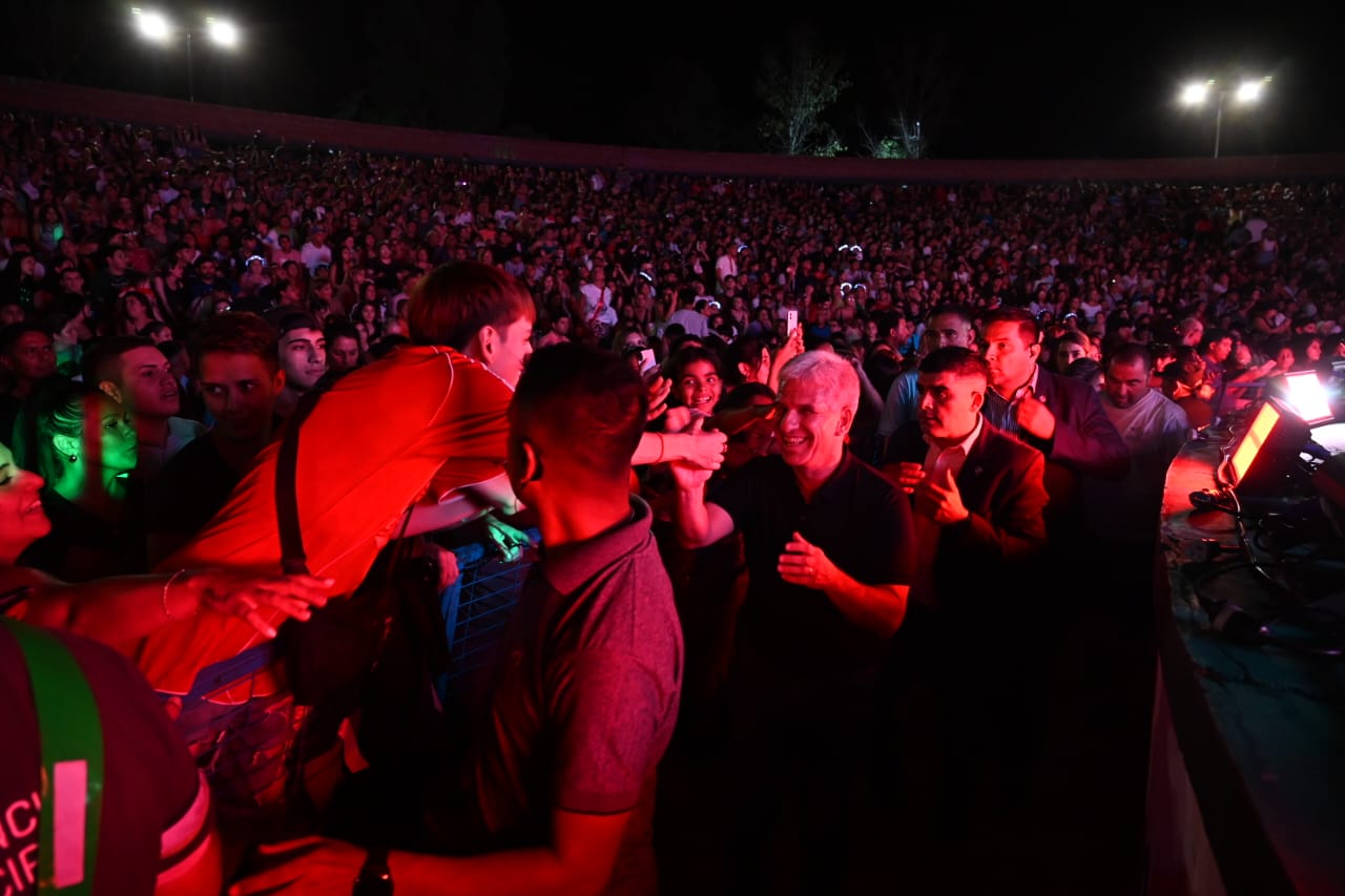 El gobernador Claudio Poggi se sumó a la fiesta que reunió familias y amigos de San Luis y otras provincias. Junto al Municipio que encabeza Gastón Hissa, que también estaba en el anfiteatro, brindaron un servicio gratuito de transporte para que nadie se privara de disfrutar a la vera del río.