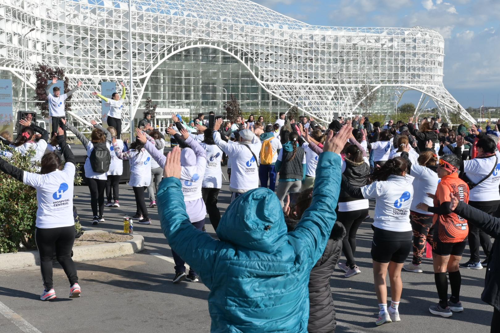 Antes y después hubo clases de zumba, al ritmo de las palmas y la música, para entrar en calor y aflojar los músculos. Quienes apostaron a mover el cuerpo en la correcaminata recibieron una remera blanca con el logo del “Ramón Carrillo” y también frutas.
