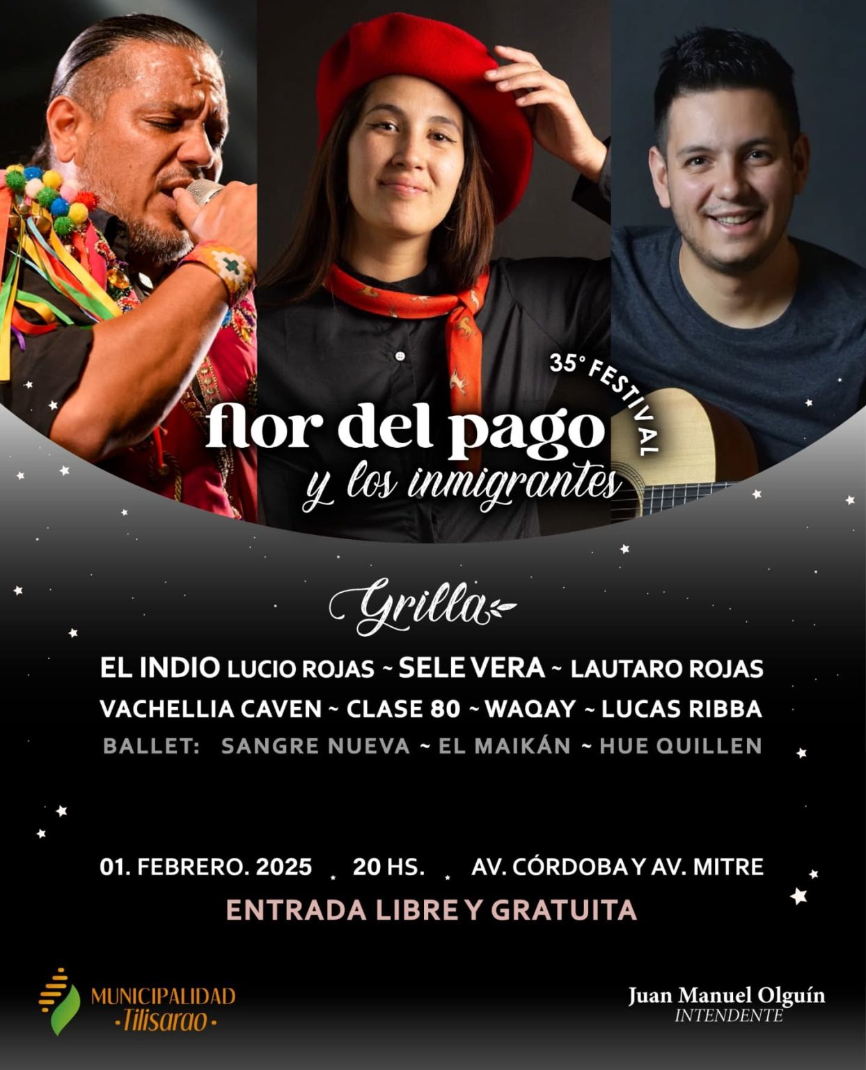 La grilla está conformada por destacados artistas nacionales y provinciales, como La Banda de Fiesta, Poneme Vivo, Miel Santiagueña, Fabricio Rodríguez, Los Sanfra, Daniela Calderón, Legendarios Ivotí, Simplemente Los Cantores del Alba, Raíz Huarpe, Alma de Guitarra y el Ballet Municipal. La entrada costará $5.000.