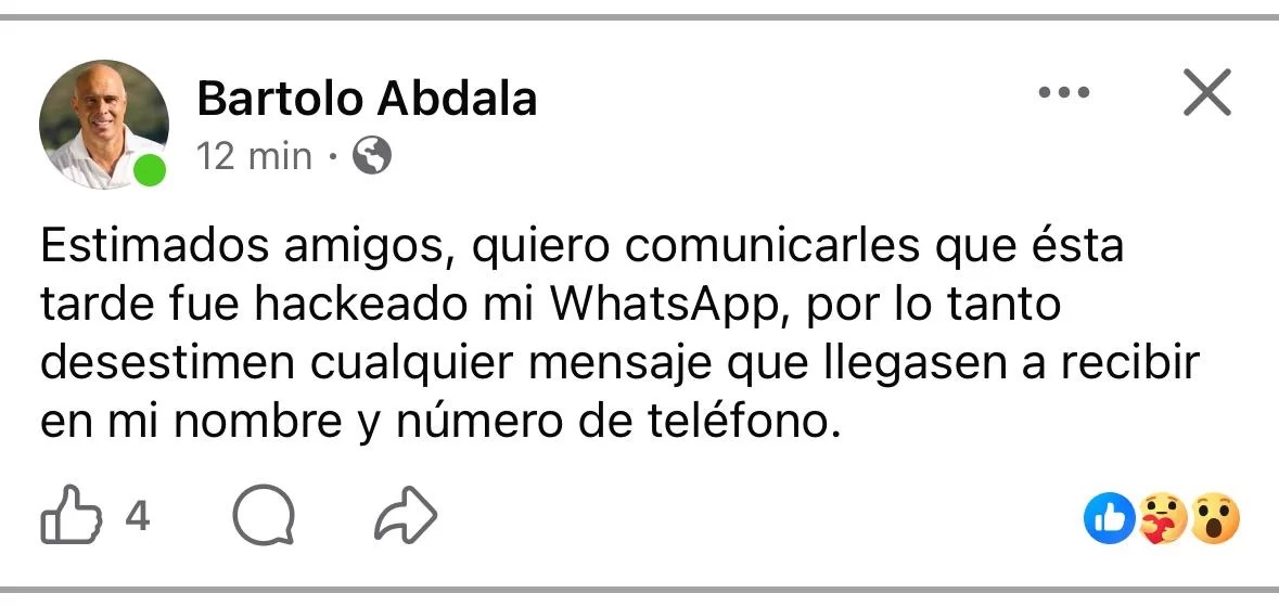 Por ahora, el mensaje del legislador es claro: desestimar cualquier comunicación enviada desde su número de WhatsApp hasta nuevo aviso.
