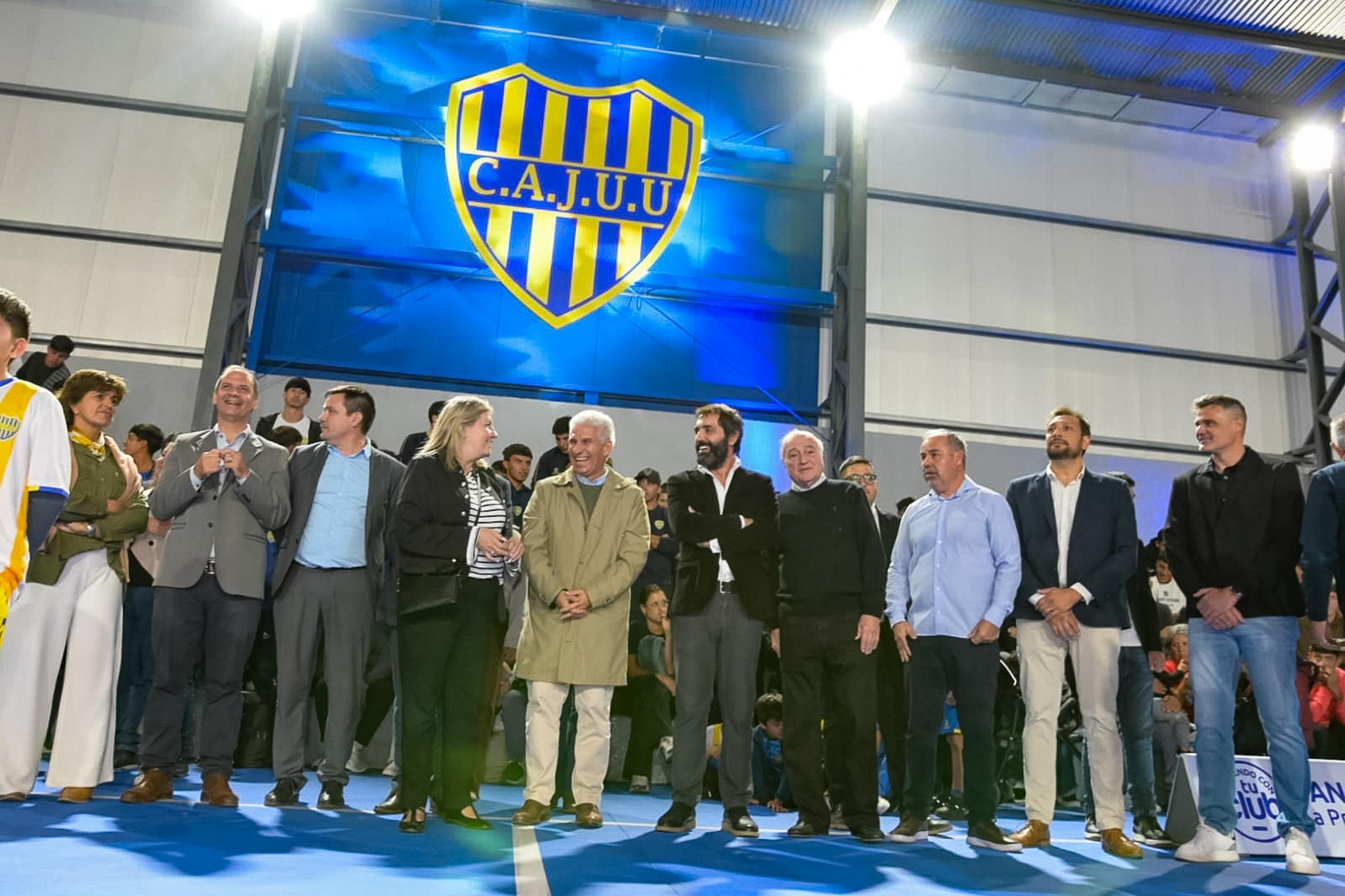 El Gobernador Claudio Poggi, junto a la secretaria de Deportes, Adelaida Muñiz, acompañaron a la dirigencia del “Juve” en la inauguración, y estuvieron junto a los hinchas y vecinos auriazules, que se acercaron a conocer la nueva obra.