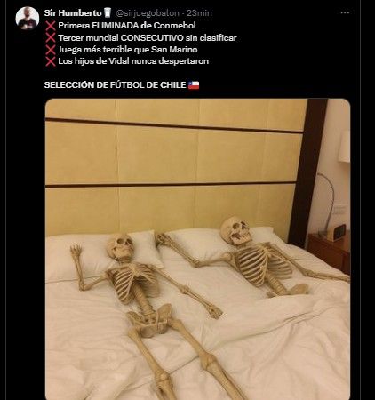 Los memes volvieron a inundar las redes tras la doble fecha de Eliminatorias Sudamericanas, en la que Chile quedó definitivamente afuera del Mundial 2026. Arturo Vidal y el DT argentino Ricardo Gareca fueron los protagonistas a la hora de graficar el humor.