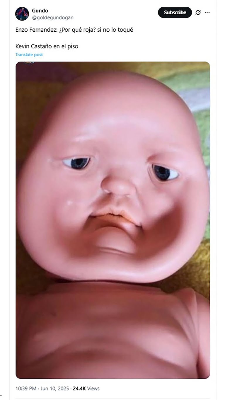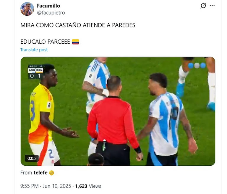 El empate entre Colombia y Argentina también fue viral. La patada criminal que valió la expulsión de Enzo Fernández se llevó todas las luces. Aunque también los memes resaltaron los cruces de un partido caliente entre argentinos y colombianos.