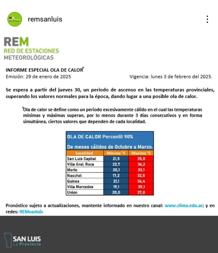 “Se espera un periodo de ascenso en las temperaturas provinciales, superando los valores normales para la época”, citó el informe. Y detalló que durante una ola de calor “las temperaturas mínimas y máximas superan, por lo menos durante 3 días consecutivos y en forma simultánea, ciertos valores que dependen de cada localidad”.