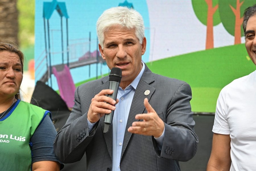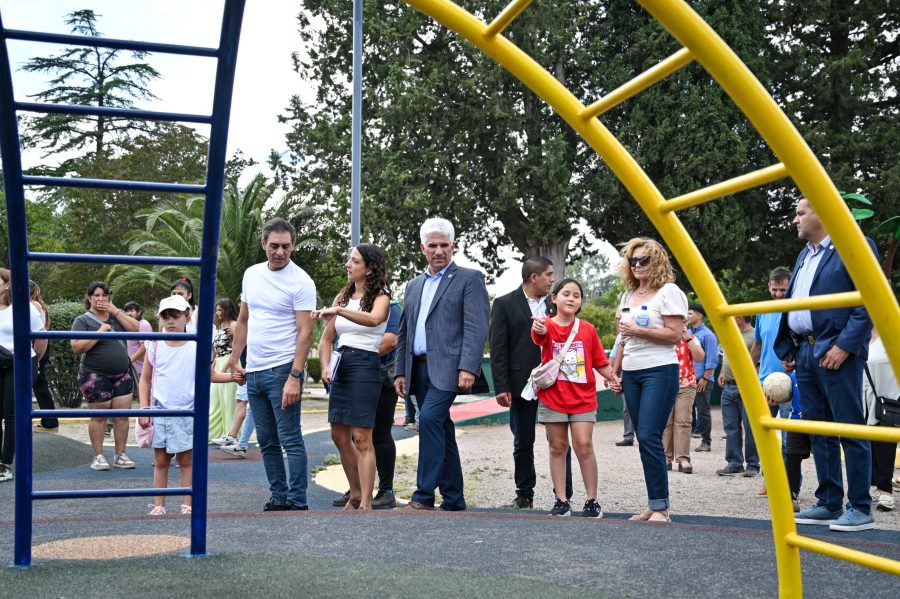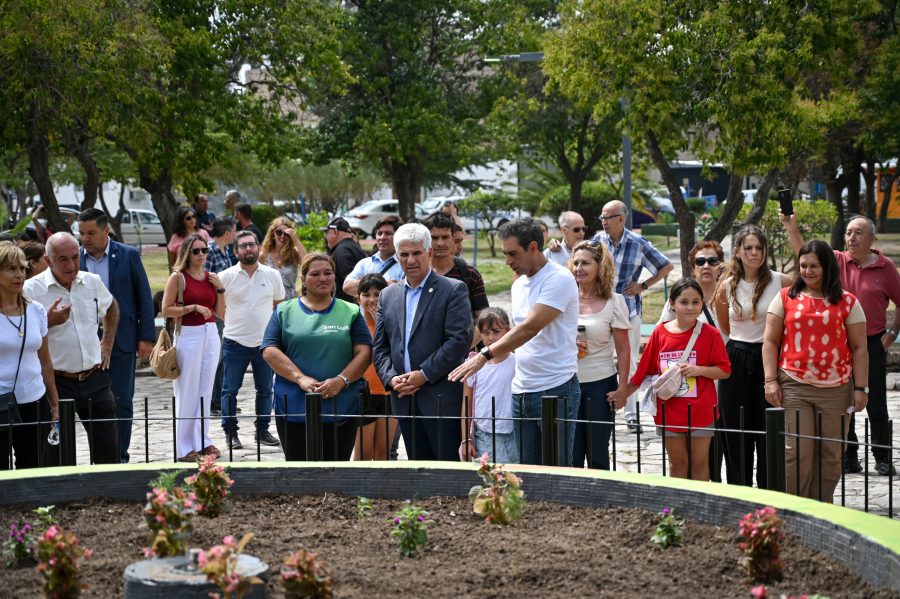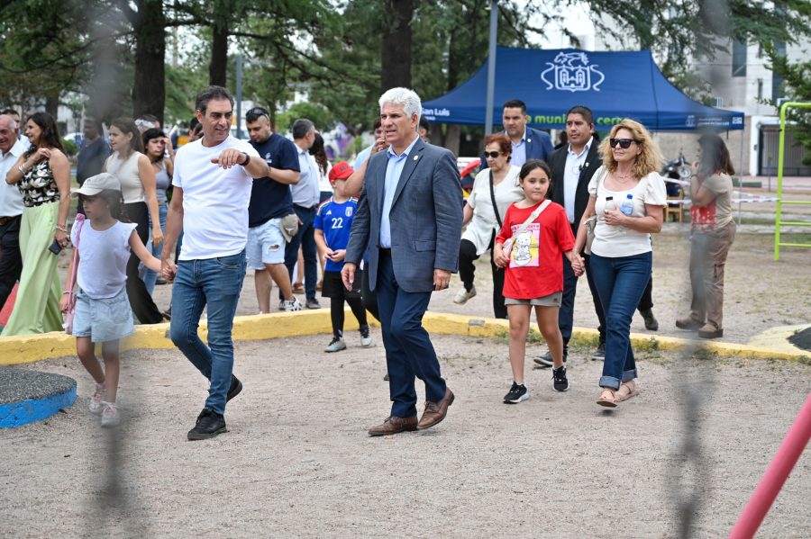 Al tomar la palabra, el gobernador Poggi destacó la iniciativa “del Intendente, del Municipio, de poner en valor estos espacios públicos y que son lugares de encuentro, de la familia, de los chicos, de los mayores. Hay que mantener bien cuidaditos estos espacios para que no sean usados con otro sentido”.