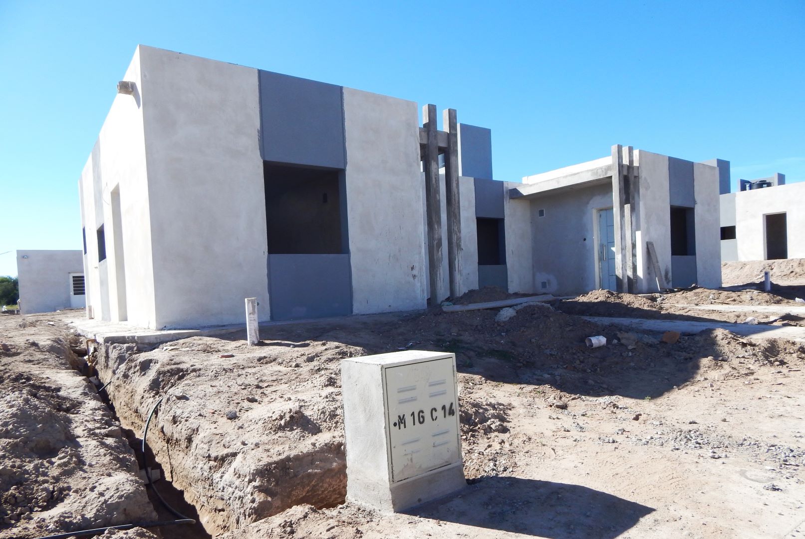 La dirección de Obras de Arquitectura y Viviendas precisó que, en las manzanas más adelantadas, las casas tienen el piso colocado, revestimientos y los primeros trabajos de pintura interior. Actualmente las tareas se enfocan en detalles y terminaciones, porque la obra gruesa concluyó.