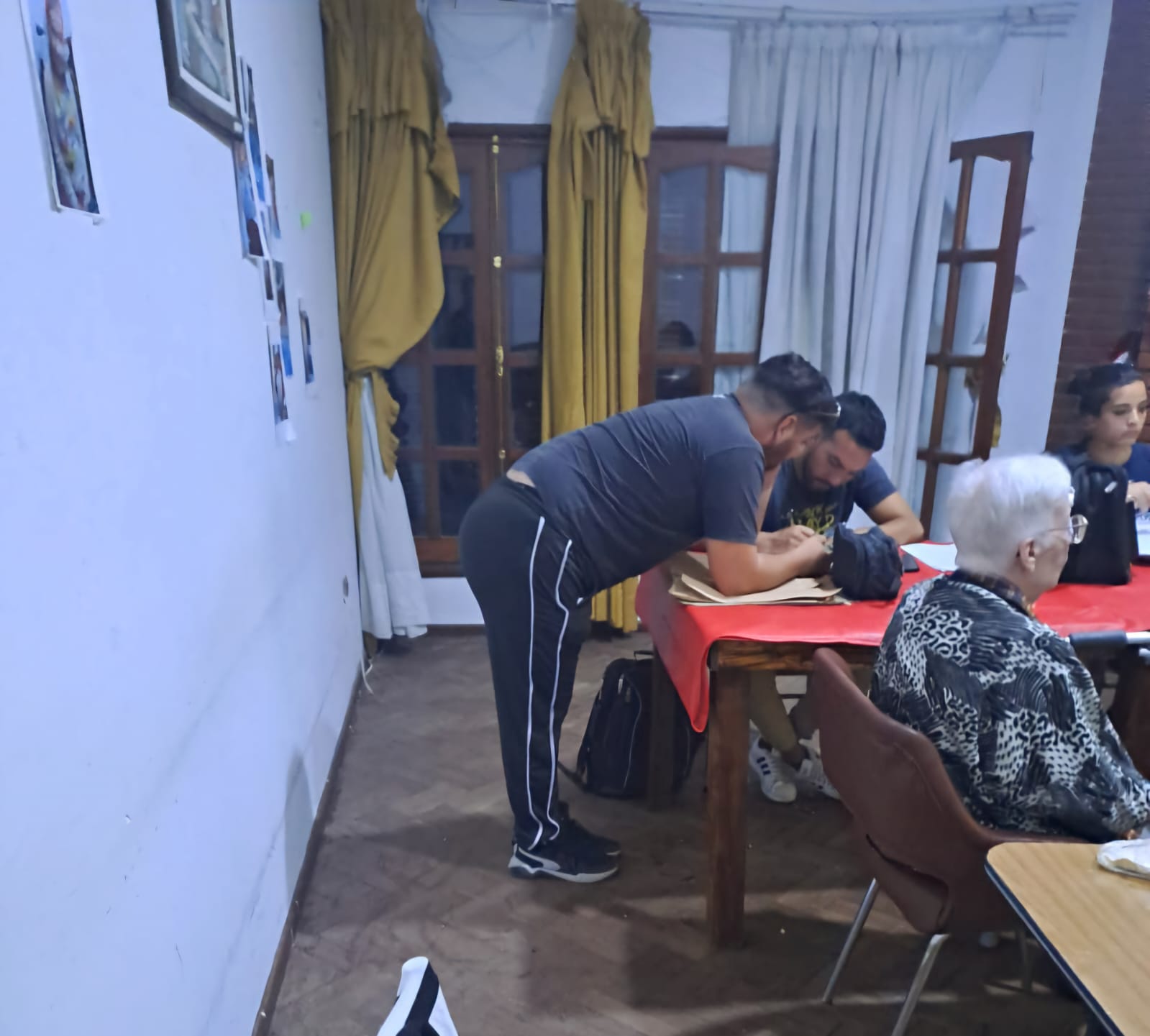 El primer allanamiento fue realizado en el geriátrico de la calle Pedernera, a las 16:40 del sábado. En el lugar residían quince adultos mayores (nueve mujeres y seis hombres), quienes fueron examinados por personal de salud.
