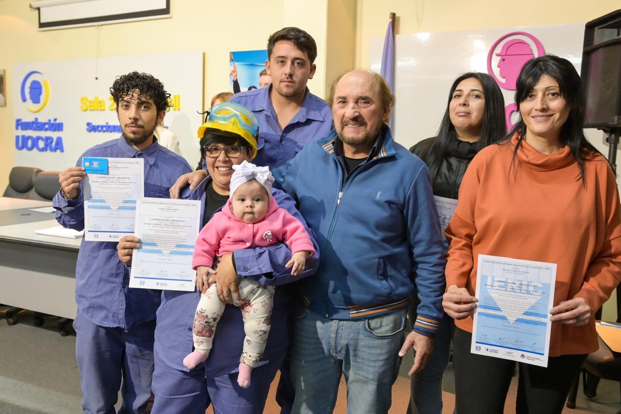 Un grupo de trabajadoras y trabajadores de la construcción recibieron este miércoles sus certificados de finalización de estudios en la capacitación “Construcción en placas de rocas de yeso 2025”, que llevó adelante la Fundación UOCRA, un espacio que pertenece la Unión Obrera de la Construcción de la República Argentina.