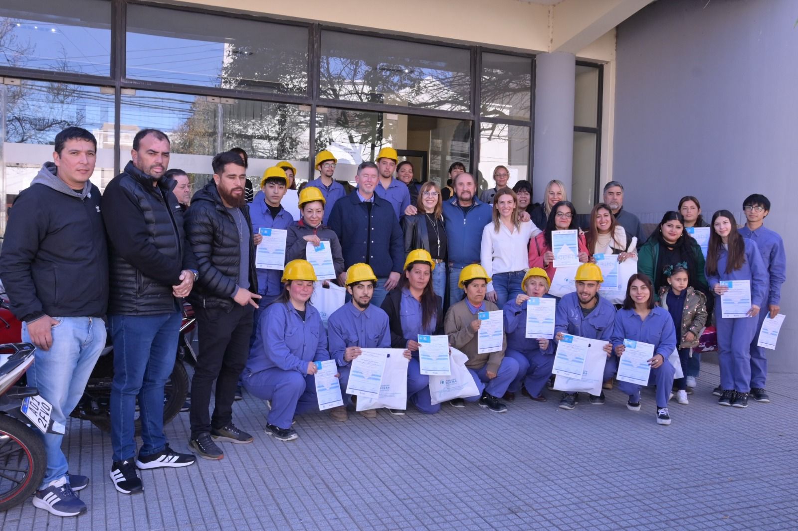 “Hoy entregamos los certificados de la finalización del curso de construcción en seco, donde la verdad que era la gran mayoría de mujeres que se pueden incorporar a esta actividad de la construcción, en esta rama de lo que es la construcción en seco y eso da muchísima alegría, además de ver también a sus hijos, sus familias, y sus pare jas que las acompañan” destacó González Riollo.