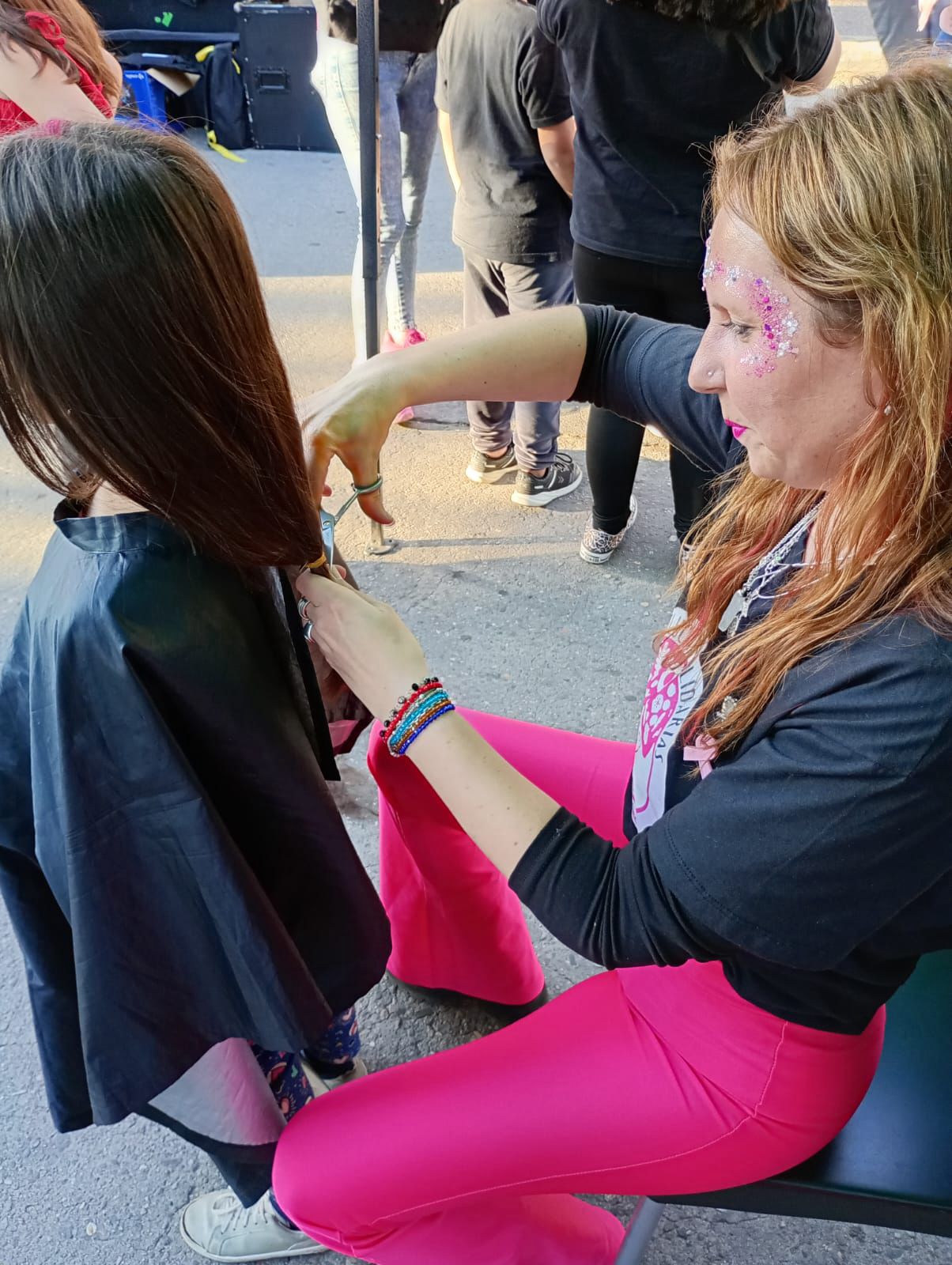 Mientras las estilistas se encargaban de hacer los cortes a las voluntarias, la plaza se llenó de música con una gran cantidad de artistas que colaboran de forma desinteresada para la causa: Julieta Rodríguez y Darío Villegas, El Joako y Ángel Gastón, además de la academia de folclore IFAL, una clase de zumba, danza árabe con Janaan Bellydance, maquillaje artístico y disfraces durante toda la tarde.