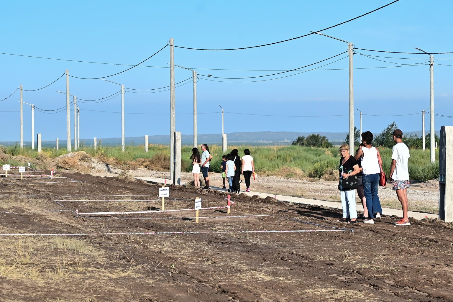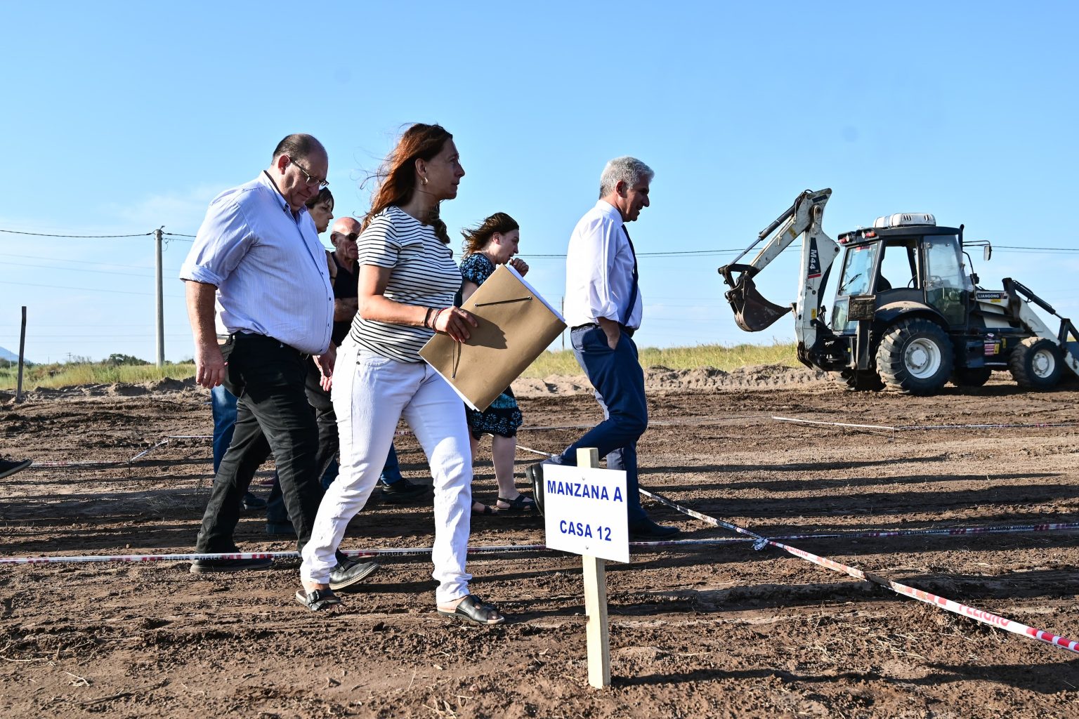 El primer lote que pisó Poggi fue el de la manzana A, Casa 11. “Pasa y cerrá la puerta”, le dijo a modo de broma el mandatario a la familia que pasará la Navidad en ese sitio que ahora solo representa un baldío pero está cargado de ilusiones.