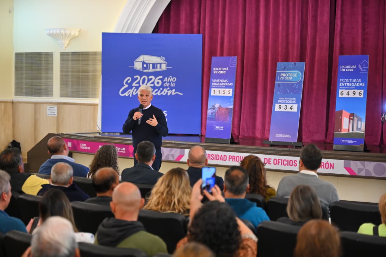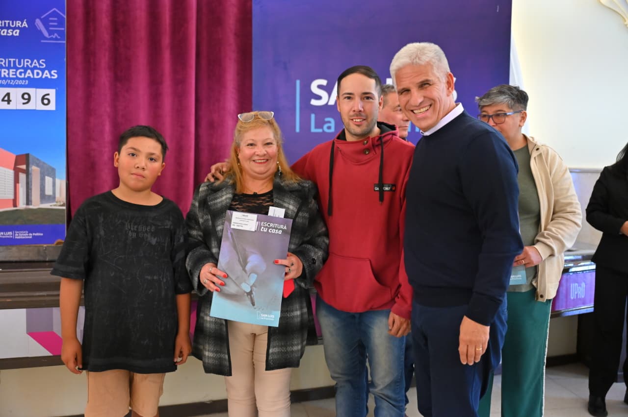 En su último step de su religiosa visita a Villa Mercedes, de todos los jueves, el Gobernador de San Luis, Claudio Poggi, encabezó un acto en la Universidad Provincial de Oficios para que otras decenas de familias se conviertan, finalmente, en dueños legítimos de sus viviendas. El Primer Mandatario entregó en mano 48 escrituras, seis decretos de regularización dominial y 13 actas del programa «Protegé tu Casa»; y no se fue sin alentar a que más vecinos se animen y comiencen de una vez por todas con ese último y necesario paso para transformarse ante la Ley en propietarios del lugar que ya es su hogar. “Lo que buscamos es que cada familia tenga su casa a su nombre y que, además, esa vivienda esté protegida ante cualquier eventualidad”, remarcó.