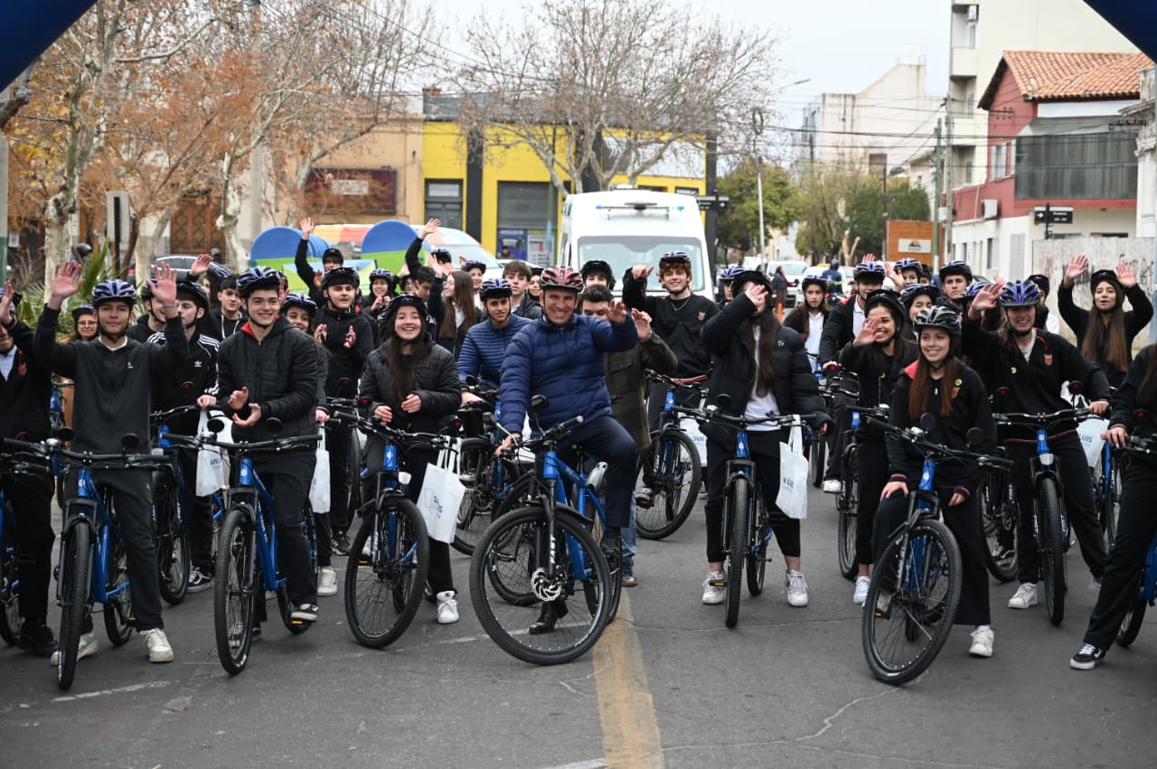 En el polideportivo de la institución, durante el acto, los estudiantes del penúltimo año recibieron la esperada bicicleta. “Creo que los chicos necesitan tener esta vida saludable. Hay muchísimos que se toman colectivos y esta es una oportunidad para que ellos puedan empezar a desenvolverse solos, independientemente, con los cuidados que se requieren. Es muy satisfactorio que piensen en la salud de los niños”, expresó Ximena De Rosa, la regente del nivel Secundario.