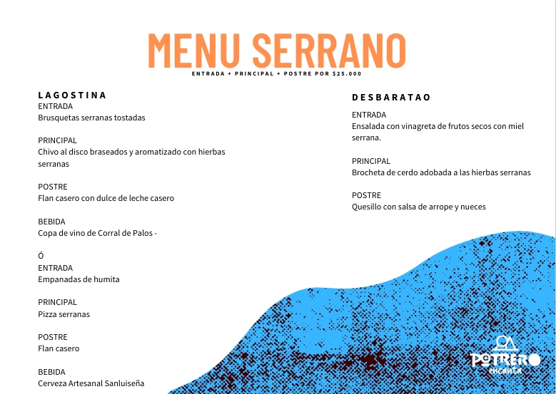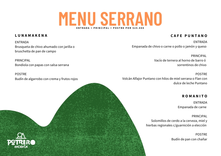 Los establecimientos que forman parte de esta primera edición del Menú Serrano son: Café Puntano, Complejo del Lago, L’Agostina, El Bodegón de Potrero, Desbaratao, Lunamakena, Las Golondrinas, Casablanca, Romanito, Lo de Vito y Calle 7.