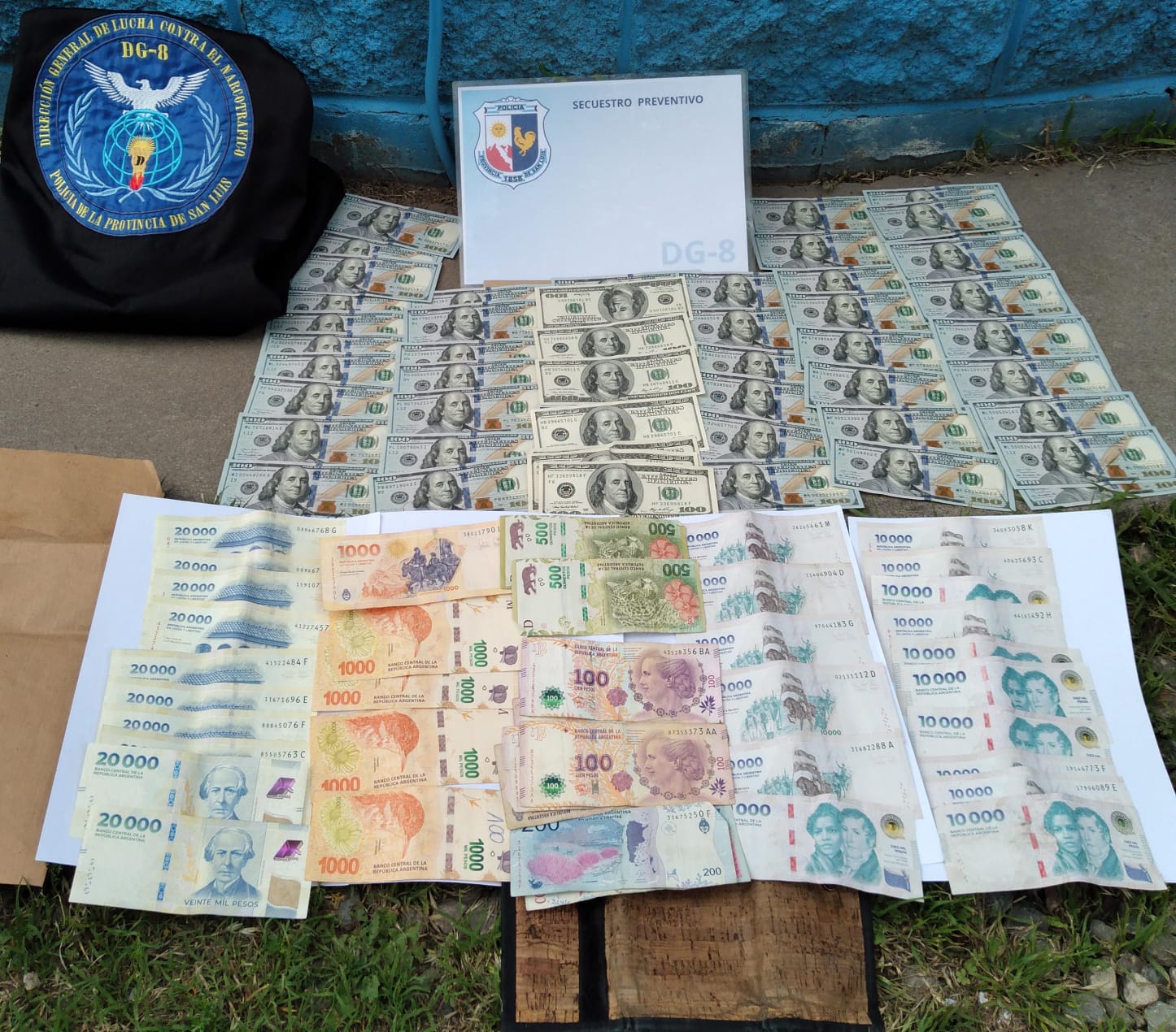 Ante esa situación el hombre fue detenido y la moto, retenida para verificar su situación legal. Efectivos de la Dirección General de Lucha Contra el Narcotráfico se hicieron cargo del procedimiento. Al requisarlo le secuestraron 166.000 pesos y 6.300 dólares.