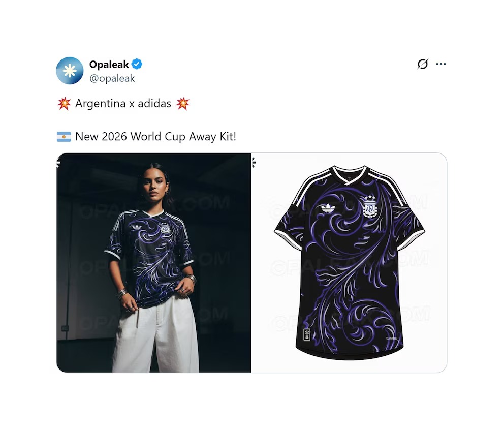 Si bien la AFA aún no realizó un anuncio oficial, la publicación de Opaleak —fuente con alta credibilidad en materia de indumentaria— refuerza la versión de que este sería el modelo alternativo que la Argentina vestiría en el próximo certamen mundial.