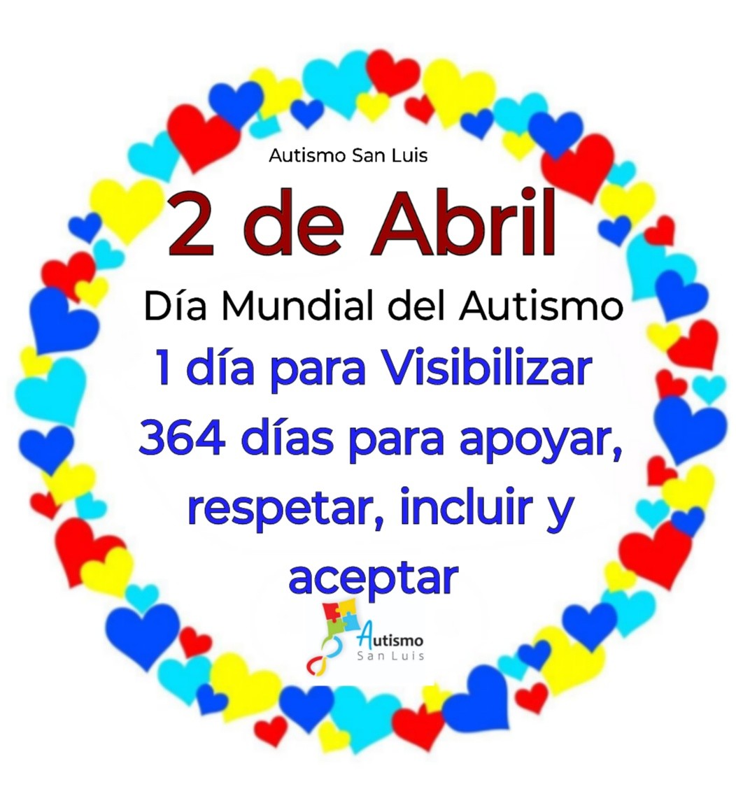Este sábado 4 de abril se realizará la séptima edición de la jornada “Hablemos de autismo”, organizada por la fundación ‘Autismo San Luis’, en el Parque de las Naciones de la ciudad de San Luis, con motivo de que este jueves 2 se celebra el Día Mundial de Concientización sobre el Autismo. El encuentro irá de cuatro a siete de la tarde: habrá stands, merienda, correcaminata, show, sorteos, chocolate, mesas de diálogo, espectáculos, sorteos y música en vivo.