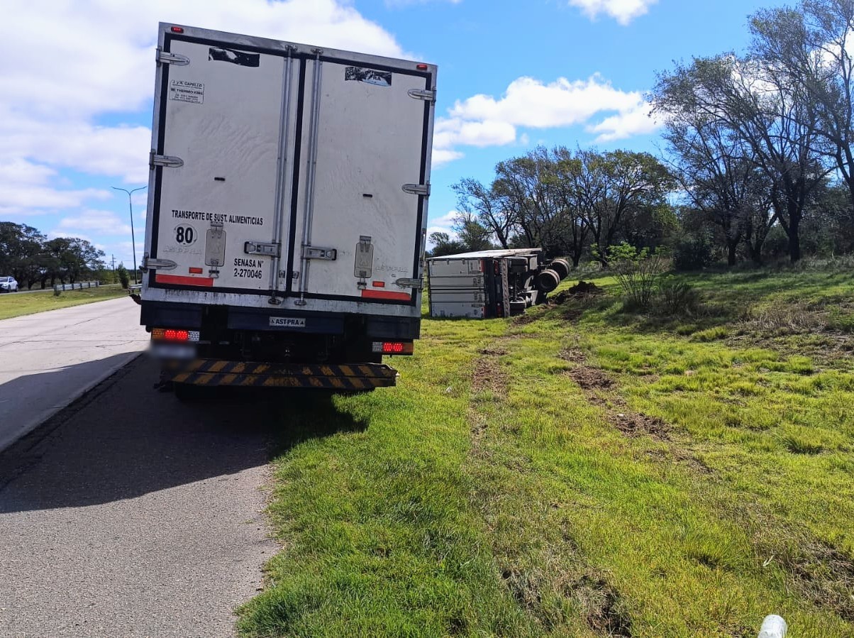 Ocurrió aproximadamente a las 14, informaron los portavoces de Relaciones Policiales. El transportista de 48 años, con domicilio en Córdoba, marchaba de este a oeste en un Scania 250. Estaba anclado a un acoplado térmico.