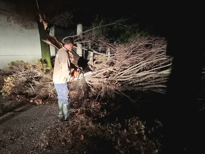 Divididos en cuadrillas y asistidos por el Gobierno de la Provincia, recorrieron la localidad para mover árboles, ramas y postes caídos. Además despejaron los canales de desagüe para que el agua pudiera circular.