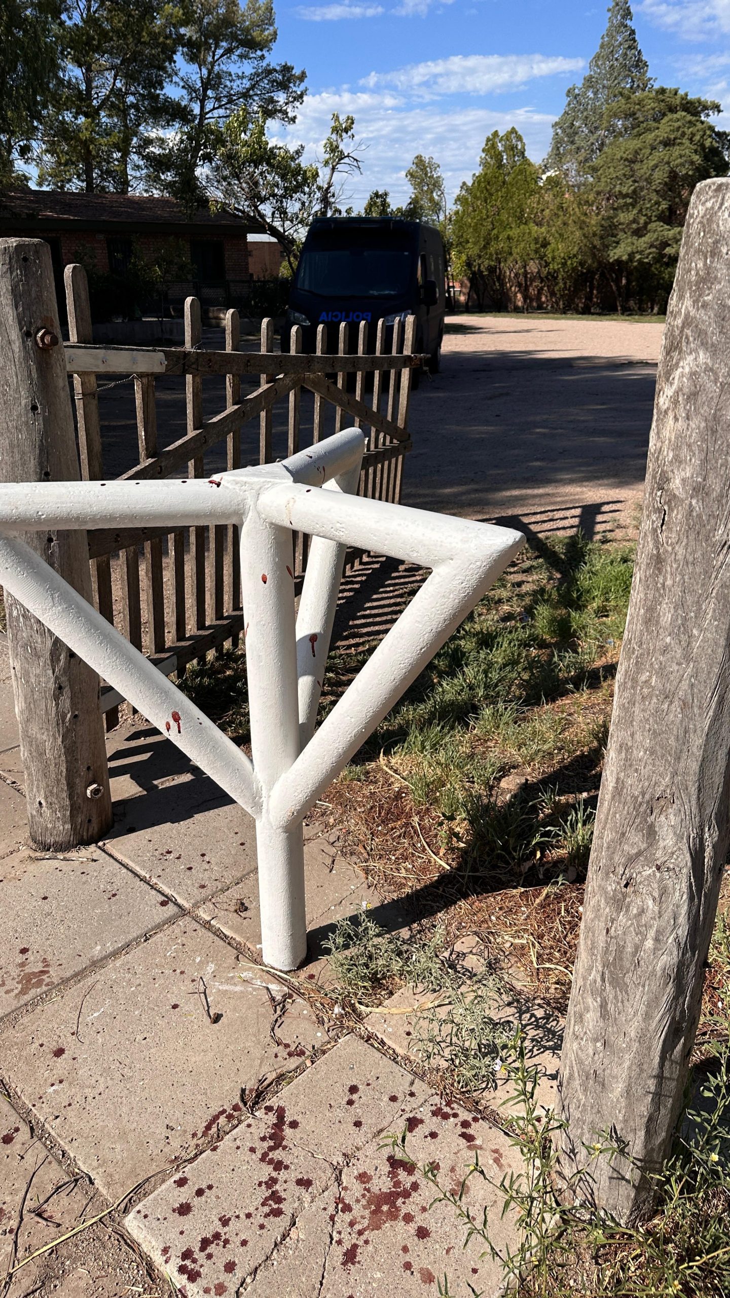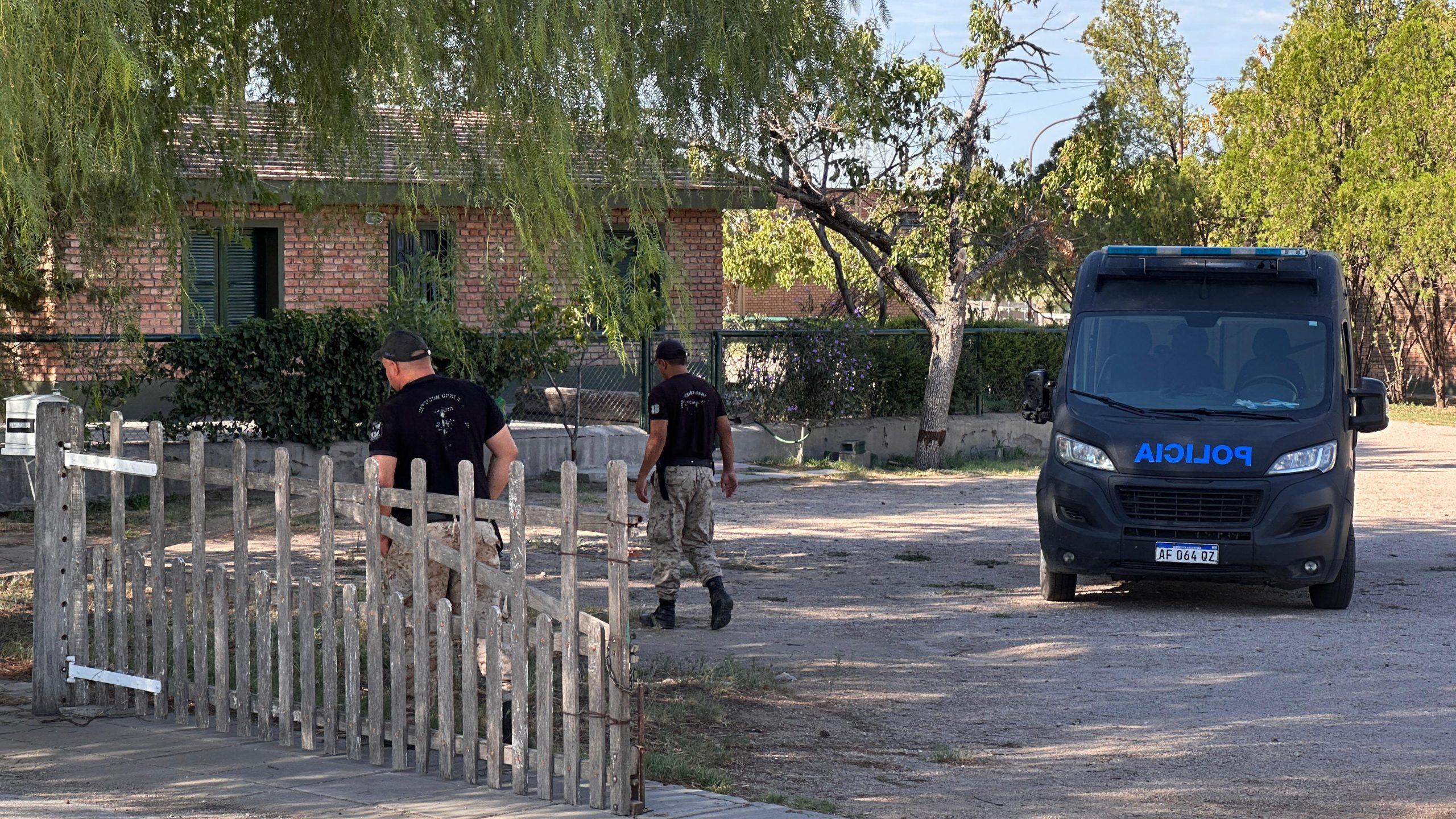 La Policía detuvo al herido, quien sería el autor del homicidio. Y por la madrugada realizó más pericias en la escena del crimen. El trabajo policial seguía a media mañana, había rastros de sangre en el piso y en el ingreso al predio.