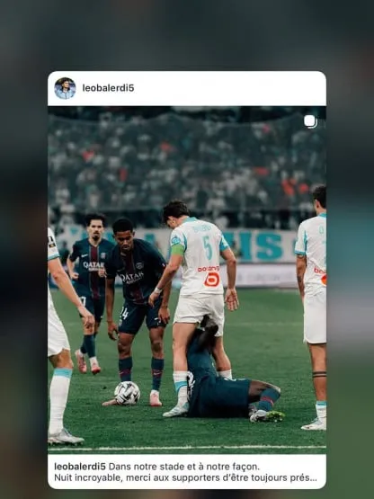 La cargada no fue al azar. El portugués citó un posteo del propio Balerdi de hace 15 semanas, cuando el Marsella venció 1-0 al equipo de la capital francesa por la Ligue 1. Aquella vez, Leo había compartido una imagen de un cruce entre ambos, que evidentemente quedó en la memoria del lateral luso.