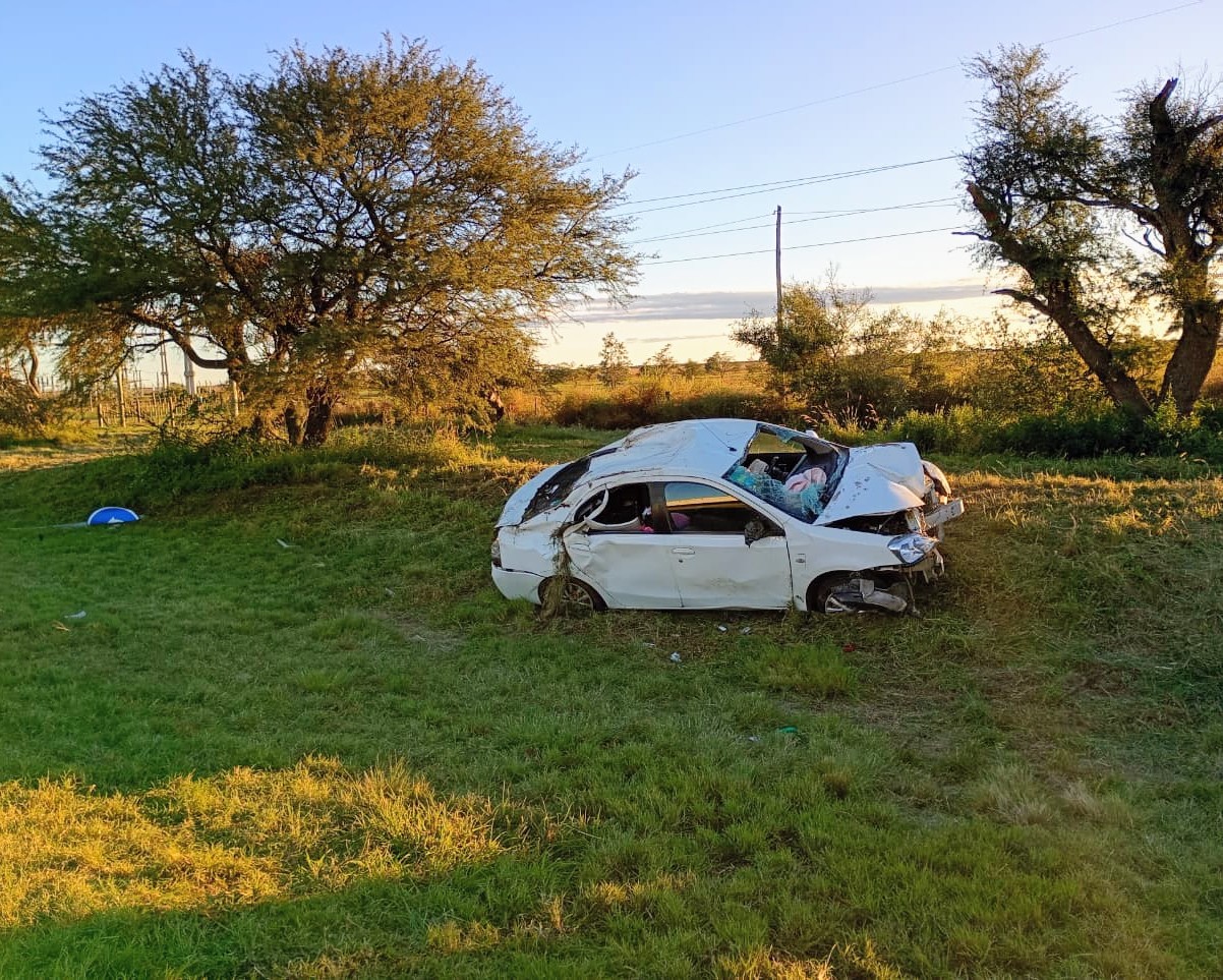 Eso hizo que el volante se le fuera de las manos por unos segundos al automovilista y perdiera el control del Etios. «El rodado mordió la banquina, cruzó de carril, impactó contra un cartel de señalización y volcó», describieron según el informe del personal de la Comisaría 29°.