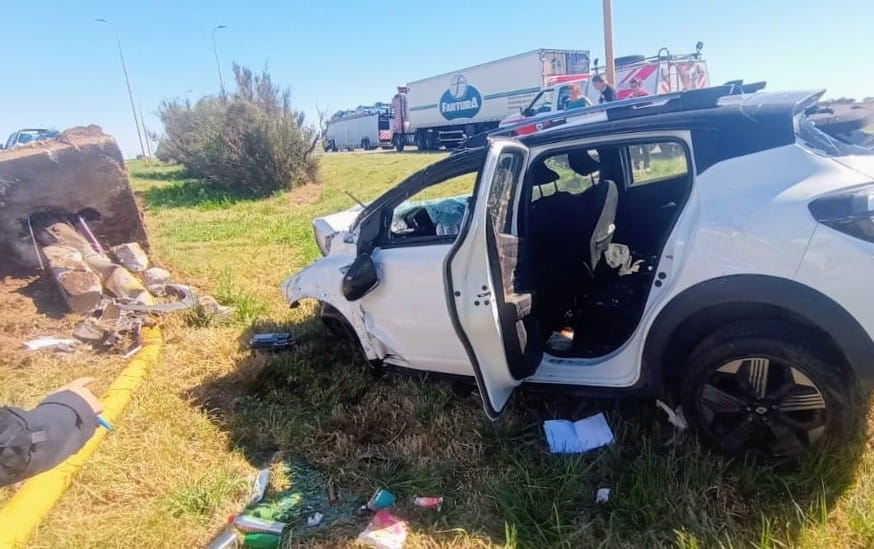 Al llegar al kilómetro 664 algo sucedió. No está claro si al conductor se le fue el volante de las manos, lo cierto es que perdió el control de la camioneta SUV. Eso hizo que el rodado saliera de una de las trochas de la autopista y se fuera directo hacia el bulevar, que divide ambas vías, e impactara de lleno contra un poste de alumbrado público.